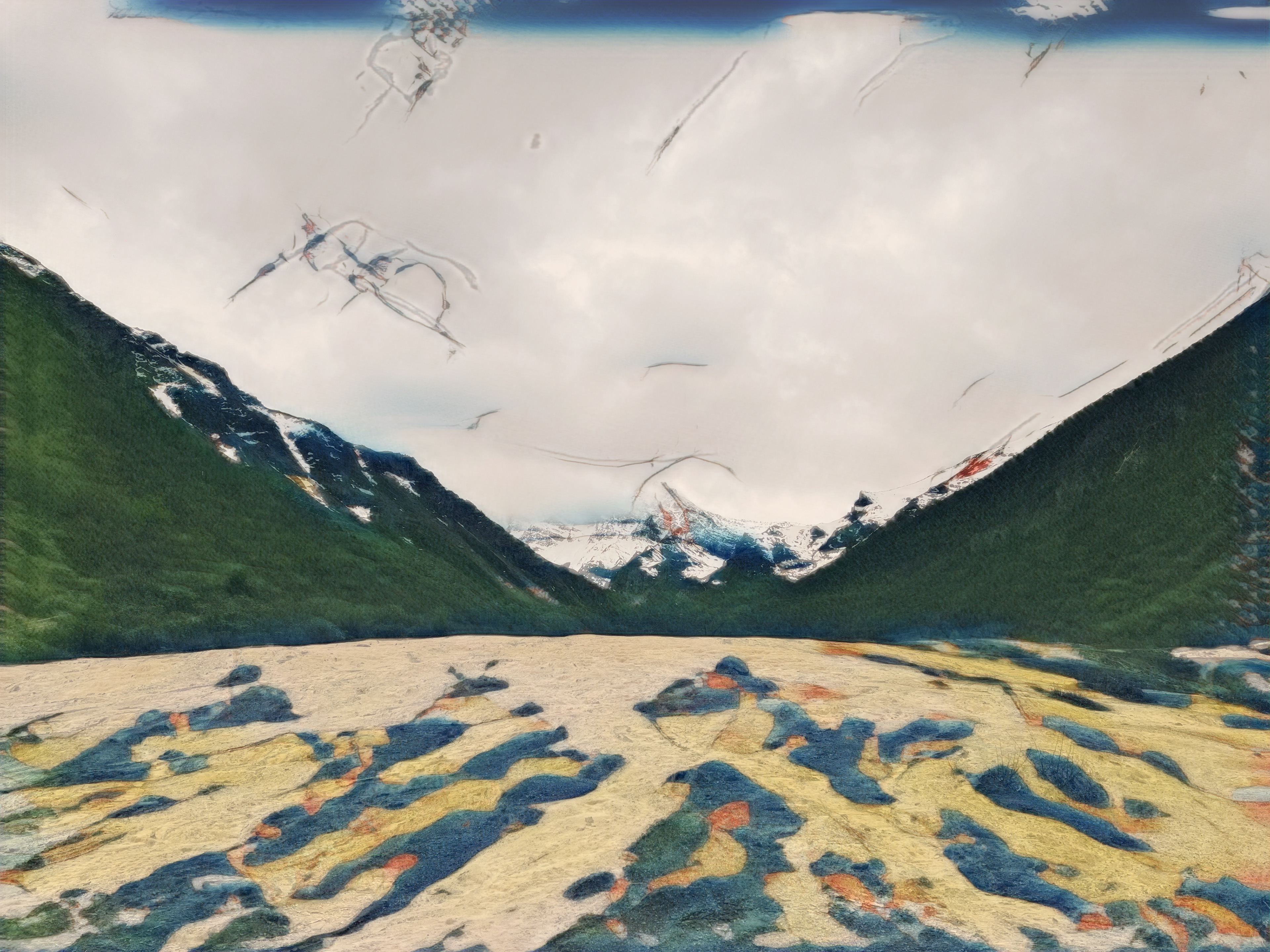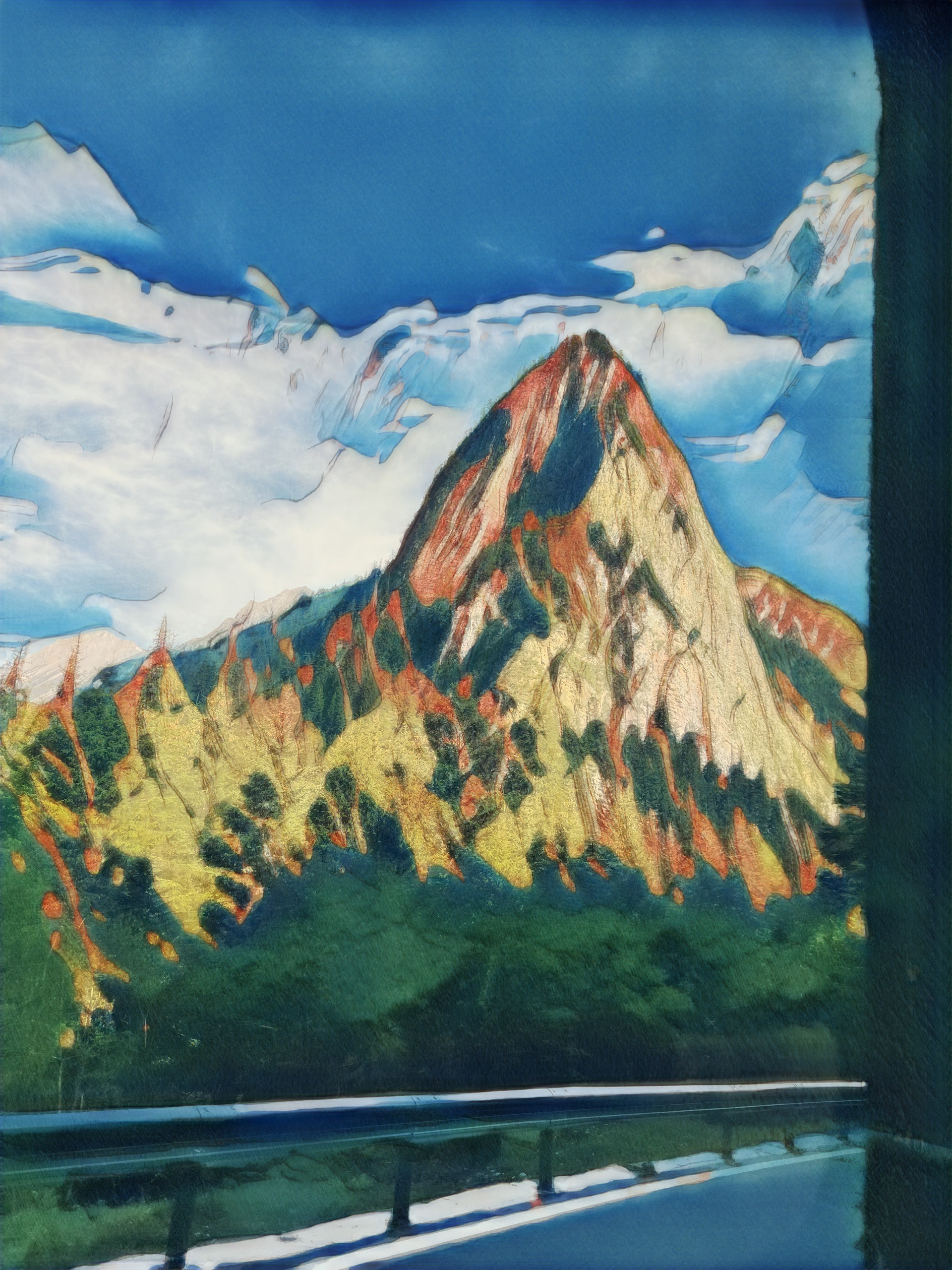 beautiful nature lake in the mountains - oil painting