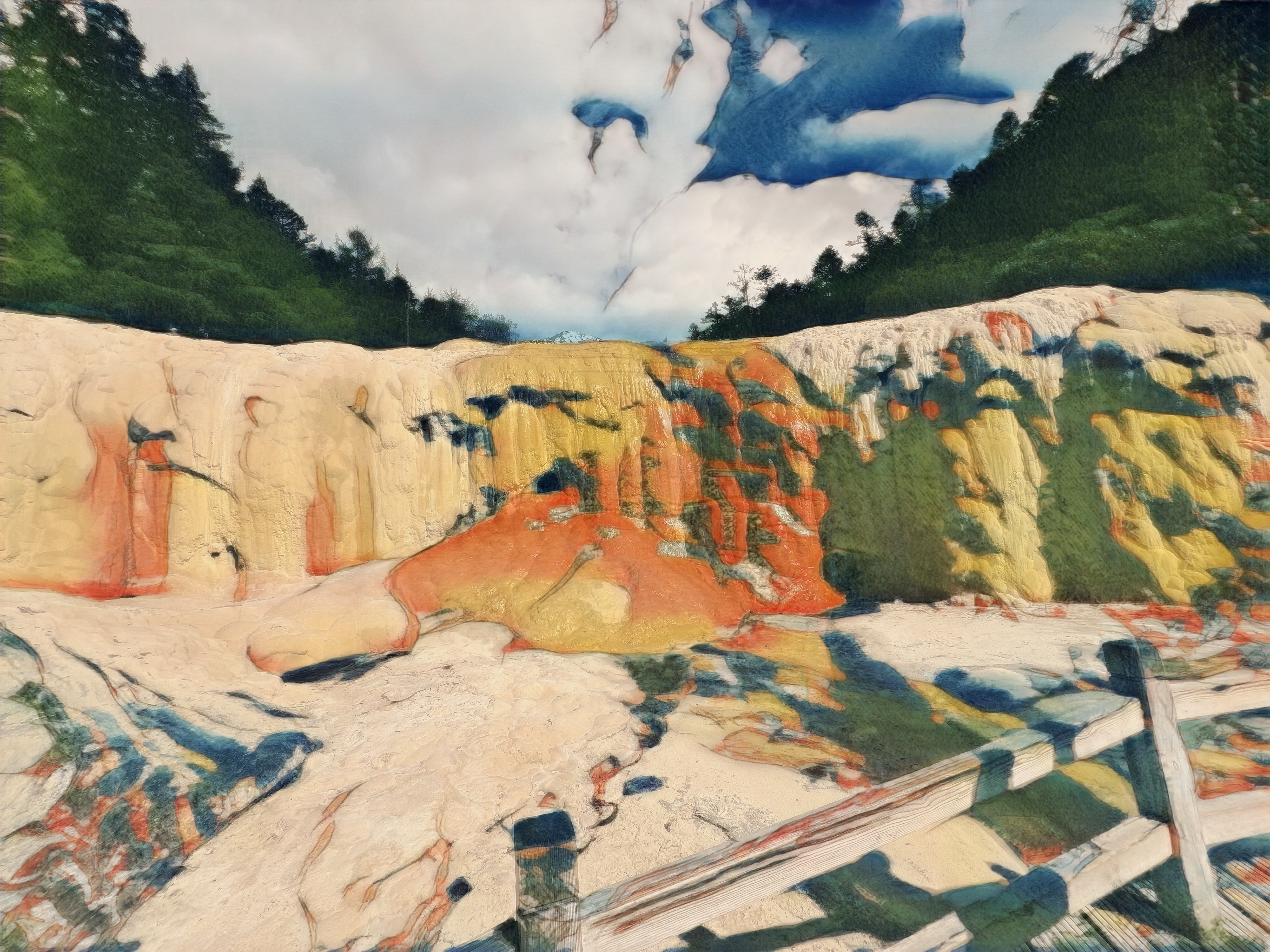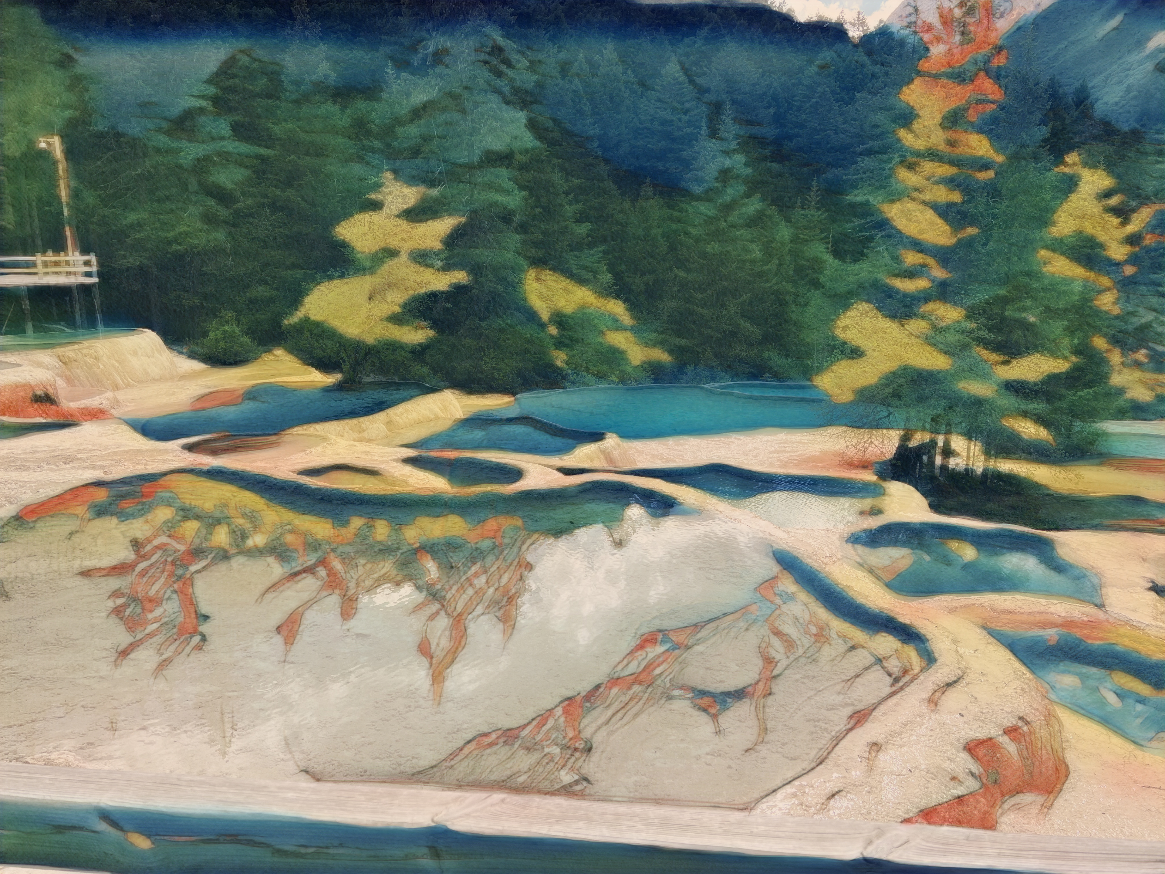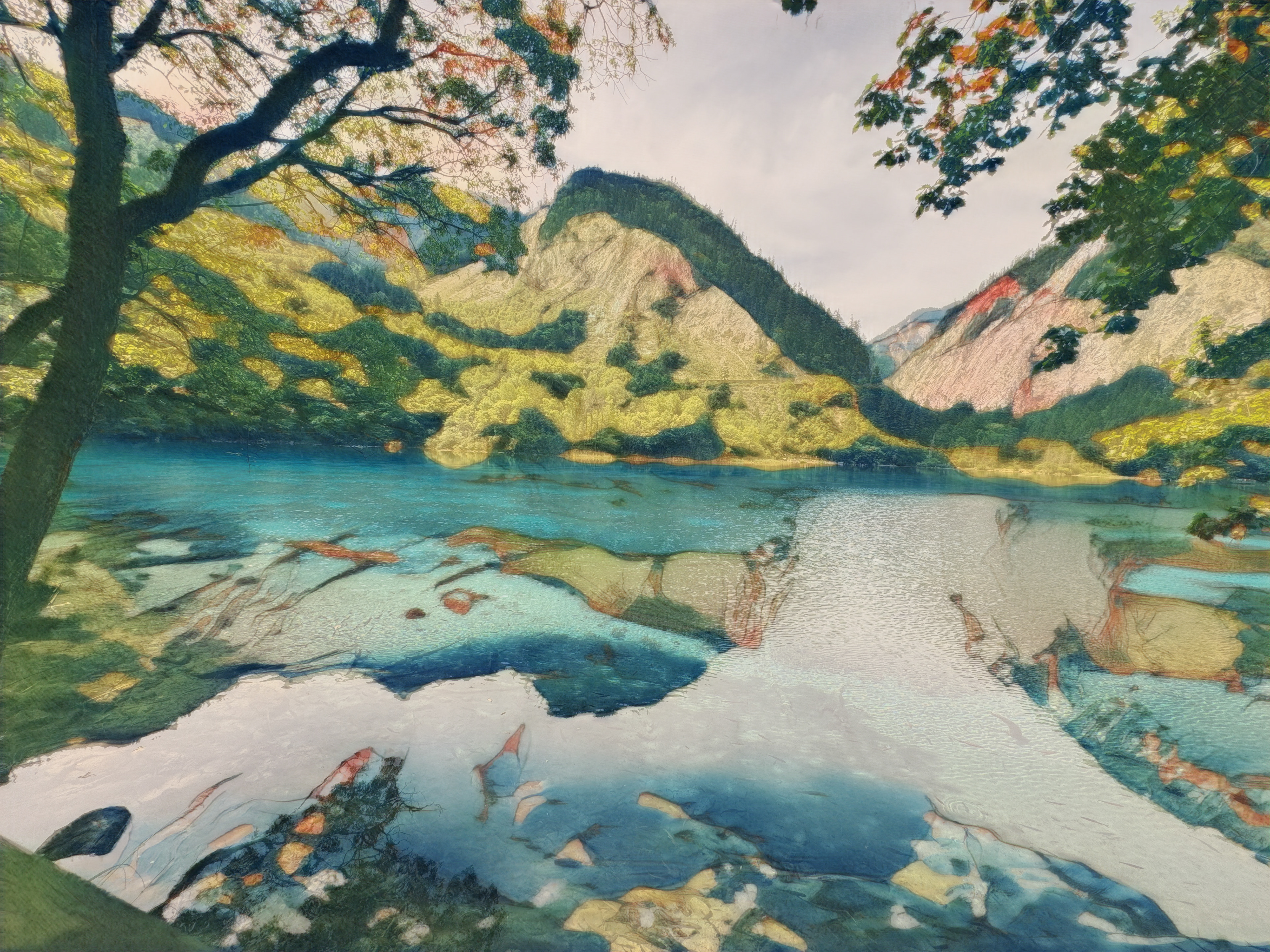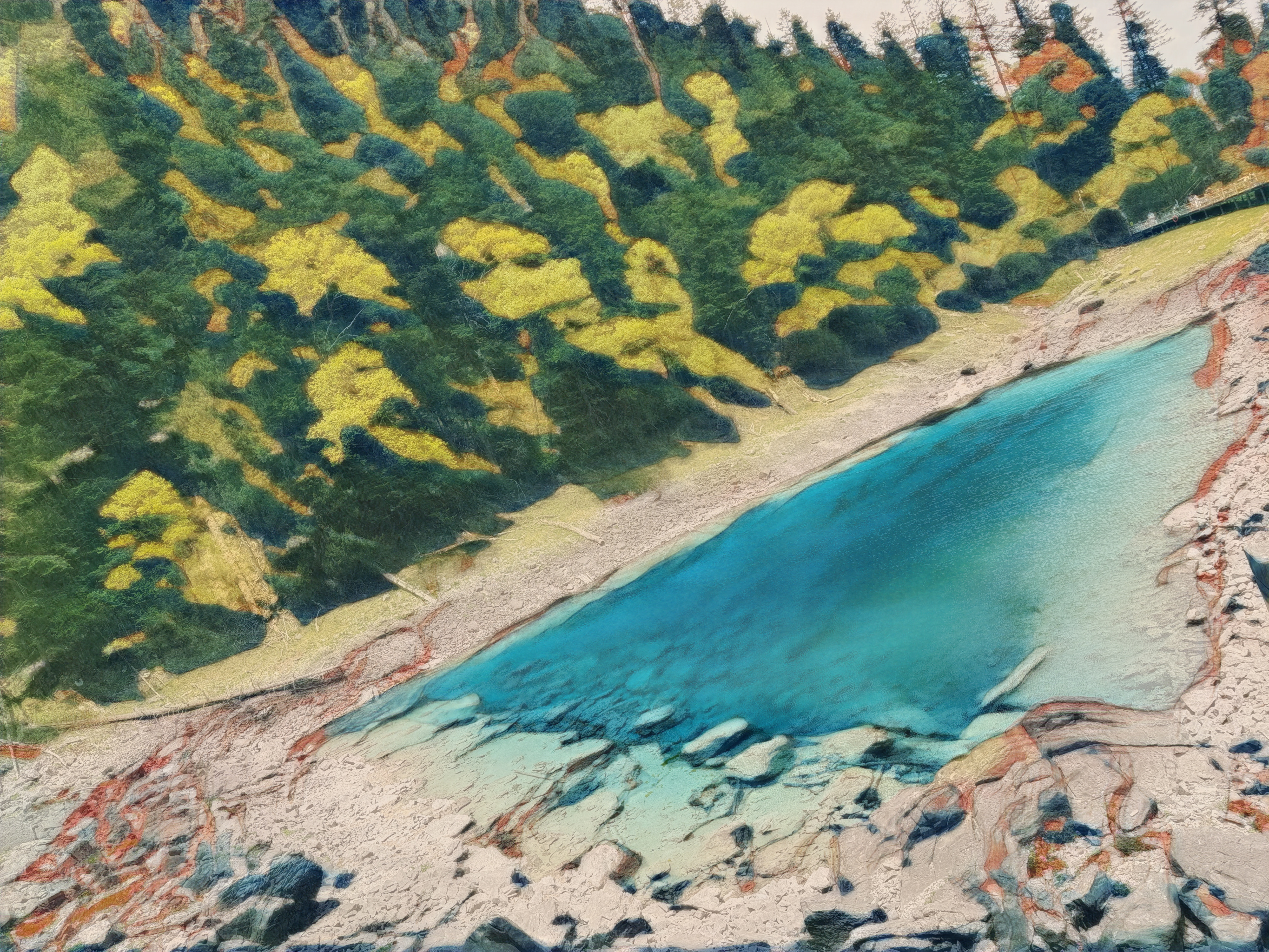 beautiful nature lake in the mountains - oil painting